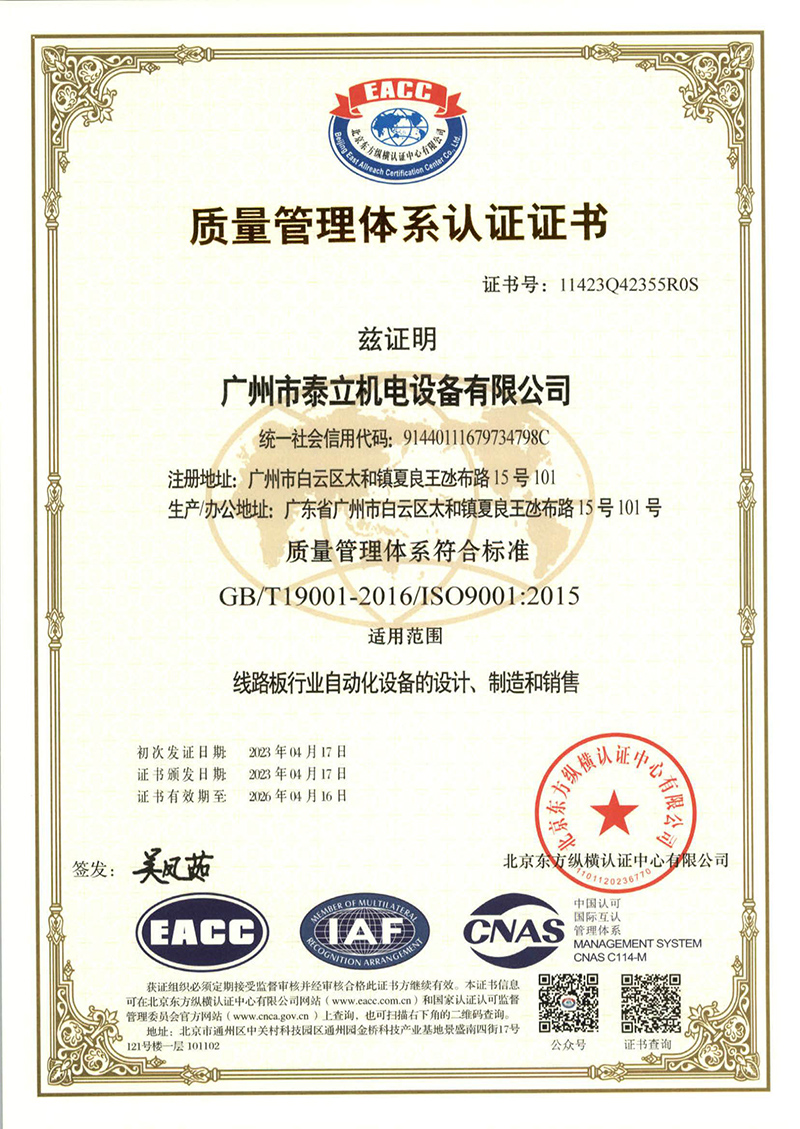《質(zhì)量管理體系認證證書》