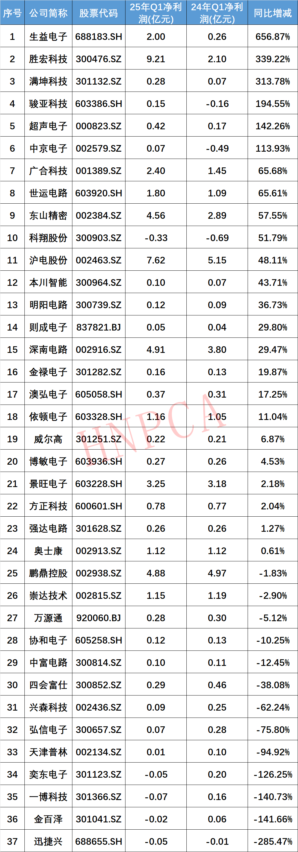 截至4月29日晚,A股PCB行業(yè)66家企業(yè)完成2025年第一季度業(yè)績披露,詳情如下: